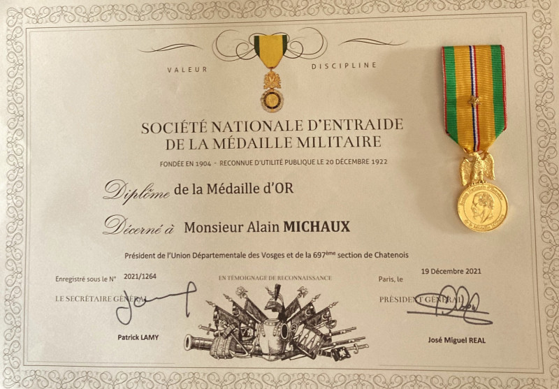 Voila le message adressé aux membres de l'Union Départementale de la Médaille Militaire des Vosges, auquel je tiens aussi à vous associer à cette récompense qui m'honore.