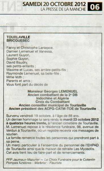 Georges LEMENUEL, était le père de Maurice LEMENUEL (+), QM1 timonier campagne 1971/1973