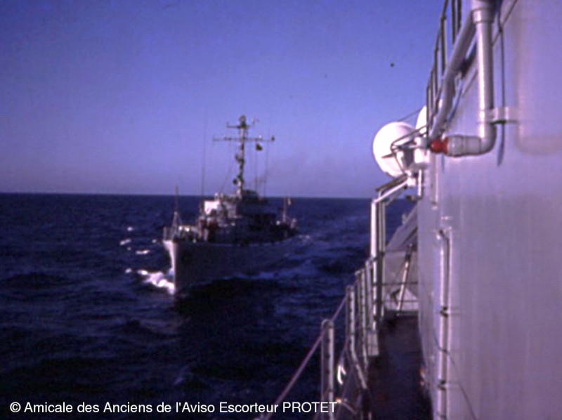 C'est en méditérannée, un dimanche que l'AE PROTET effectue un excercice d'interception avec cet escorteur côtier.