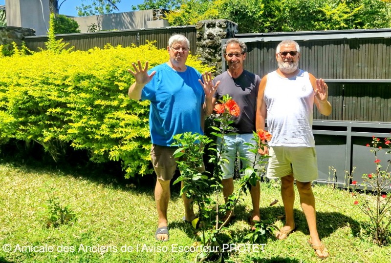Les deux compères de 40 ans, Michel et Raymond,  en séjour dans l'Océan Indien, ont rendus une visite surprise à notre ami Alain dans sa résidence de PETITE ÎLE.