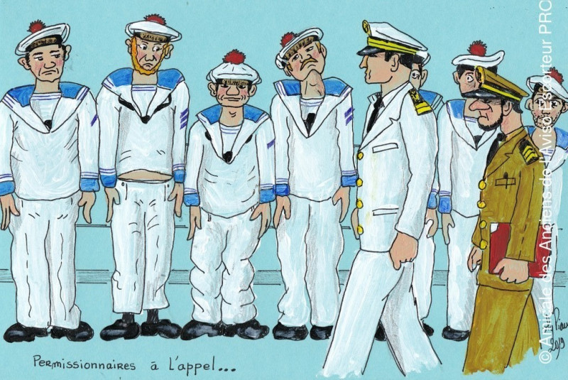 Matelot et quartier maître qui allaient à terre, devaient, plage arrière s'aligner pour passer l'inspection devant l'officier de garde.