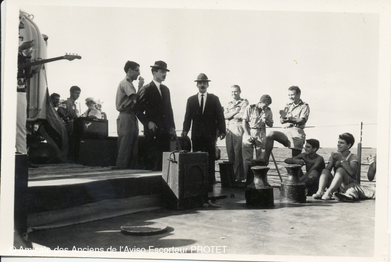 De la droite vers la gauche : Qm bosco Darrault, ? , Sm timon Jan, ? Mt bosco Lebon ? , Off asm ?, les 2 acteurs ?, Médecin Amouretti, ?