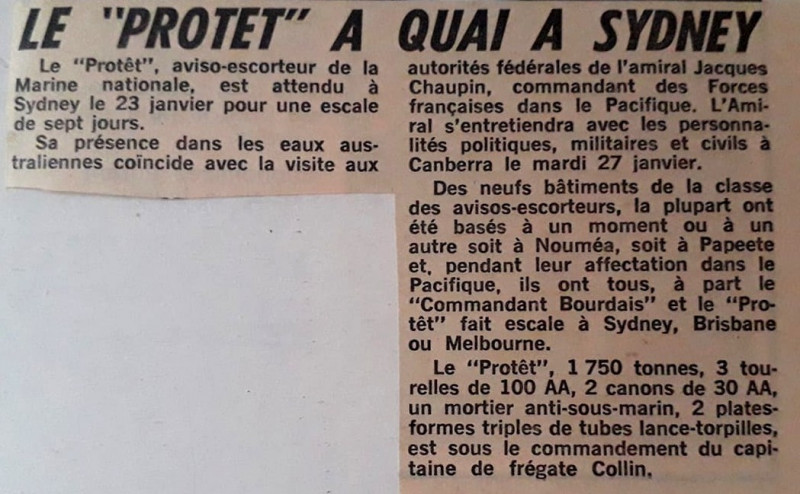 Article paru dans un journal francophone lors du passage du PROTET à SYDNEY.