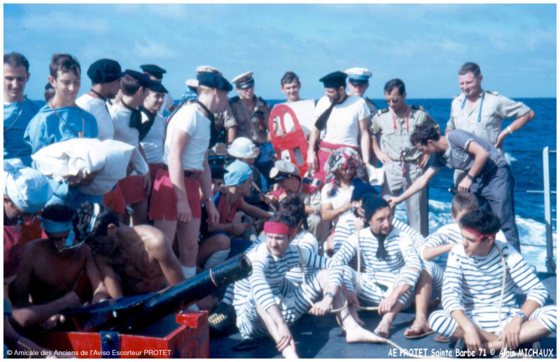 C'était en 1971, en atlantique au large ds côtes africaines. Reconnaissable l'officier machine et le commandant (+) NESTER. Il y a aussi l'un des derniers embarqués, va t'il se reconnaitre ?