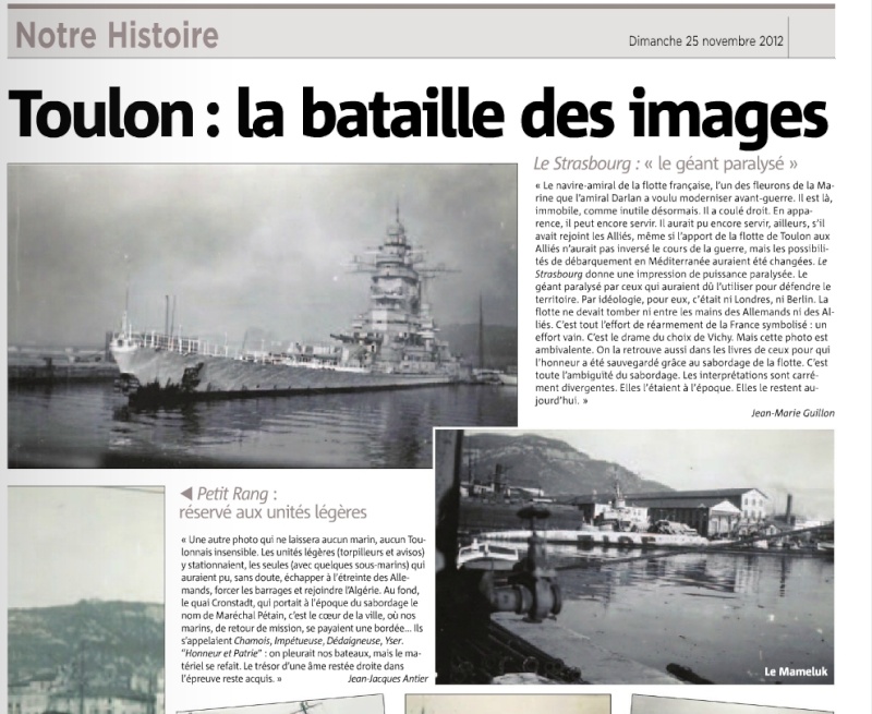 le plus grand drame de notre Marine, pour l'histoire mon grand père DIVERRÉS Pierre était second maître fourrier sur le PROVENCE, il restat interné 7 mois suite à ce sabordage dans les prisons de Toulon tenus par les allemands, démobilisé par la suite il regagnat Plogonnec près de Quimper, mais il ne survécut pas à la tuberculose contracté dans les camps à l'âge de 39 ans, du coup en 1942 mon père incorporat les Pupilles de la Marine alors basé à Cahors sur le Lot à l'âge de 13 ans, par la suite il devint fourrier aussi, mais il m'a toutjours confié avoir souffert de cette période de guerre (encadrement allemand, mal nutrition, infamie des cadres etc) et pour l' anecdote peu après la libération, arrivé à Pont l'Abbé (29 s) de la gare pour rejoindre le Dourdy (école des mousses - Brest étant dévasté) des caillous lancés par la population sur tout le trajet d'une quinzaine de bornes sous les quolibets de "COLLABOS".