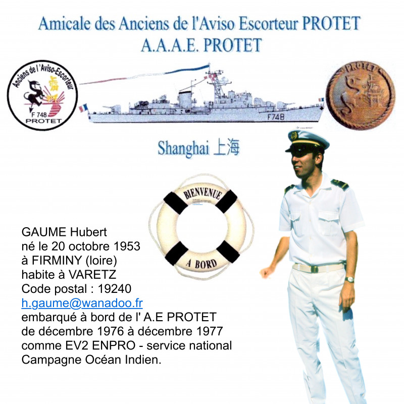 Embarqué sur l'A.E PROTET de décembre 1976 à décembre 1977