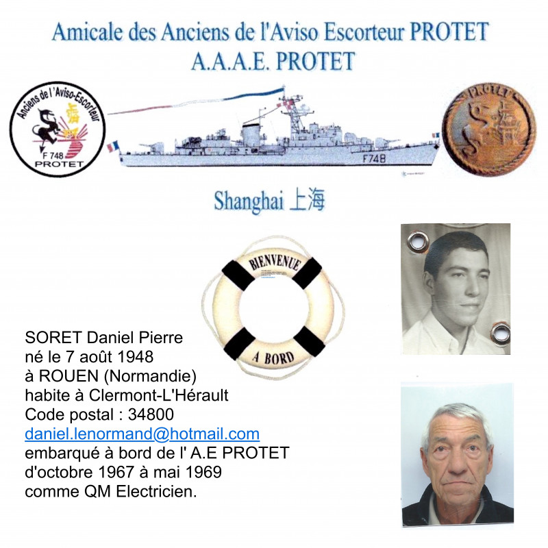 Merci à toi, DANIEL d'avoir franchi de nouveau la coupée, du coup tu es le premier de 2024 à rejoindre un équipage fort sympathique, et j'espère pas le dernier, j'en appelle donc, à tous ceux désireux de refaire la marine avec un équipage inter génération et ainsi de nous confier leurs souvenirs, les photos et documents qui viendront étayer nos rubriques de l' A.A.A.E PROTET, merci à vous, kénavo TY PIERRE