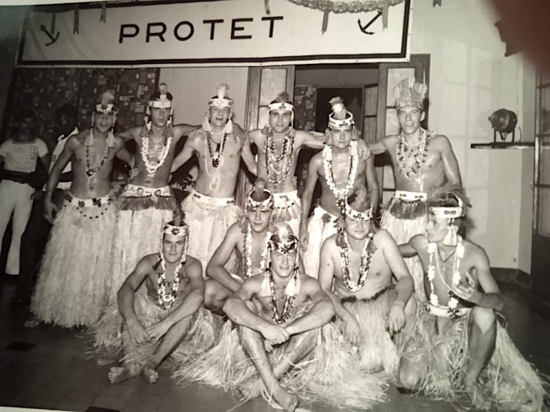 Ce bal avec prestation de notre groupe tahitien du bord et l'élection de Miss Protet a eu lieu le 22 février 1969 pendant notre séjour à Diégo pour un petit carénage étoffé du 24 novembre 1968 au 15 mars 1959.