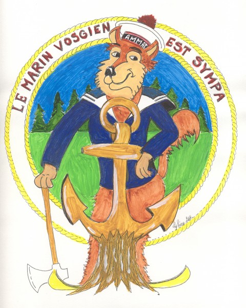 Ty Pierre à fait ce dessin à ma demande pour un éventuel transfert sur un tee shirt et pour rappeler que le Vosgien est sympathique ....... d'autant plus si il est marin !!!!!!