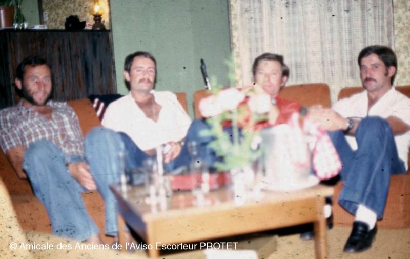 Photo de 4 anciens de la campagne 197/1973, lors d'une escale avec notre lévrier des mers à NOUMEA en août 1978, à l'auberge des Mt KOGHI.
