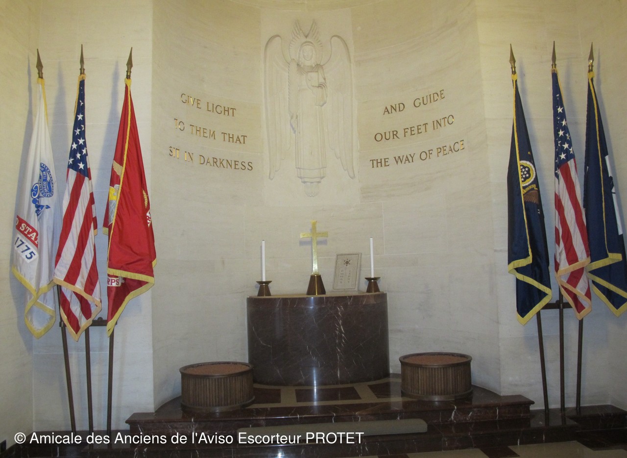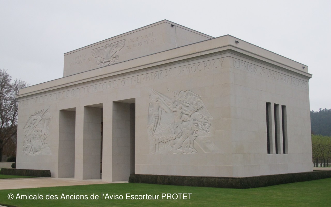 L'architecte du mémorial est William Adams Delano, de New York, et le cimetière a été dessiné par Homer L. Fry d'Austin (Texas). L'inauguration officielle date du 23 juillet 1956, en présence de Douglas DILLON, alors ambassadeur des États-Unis.