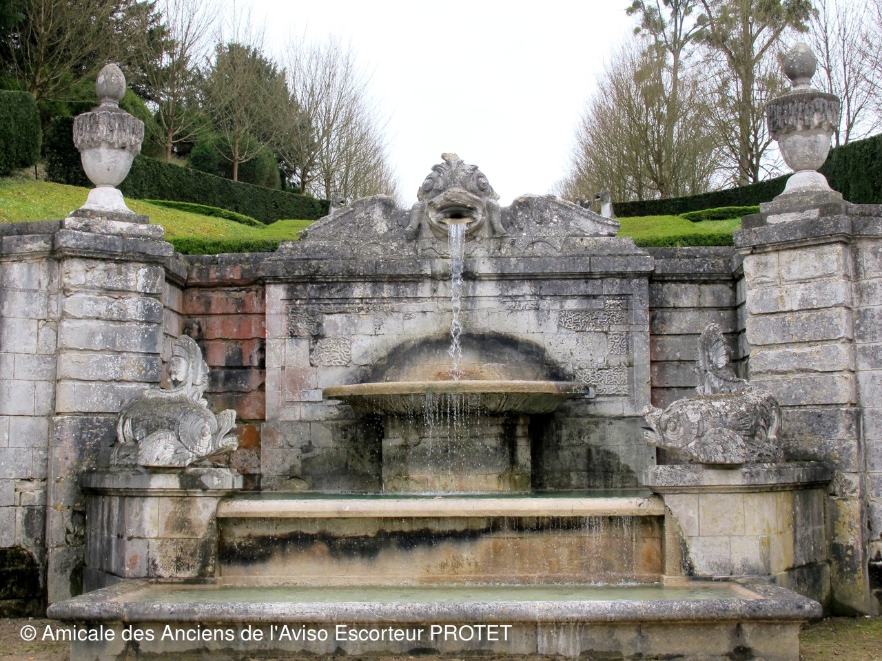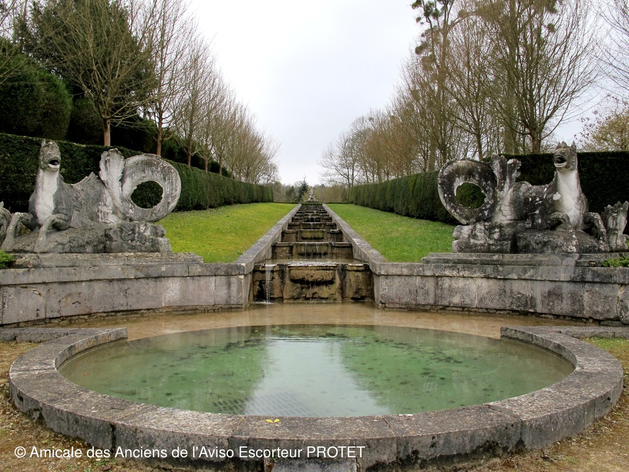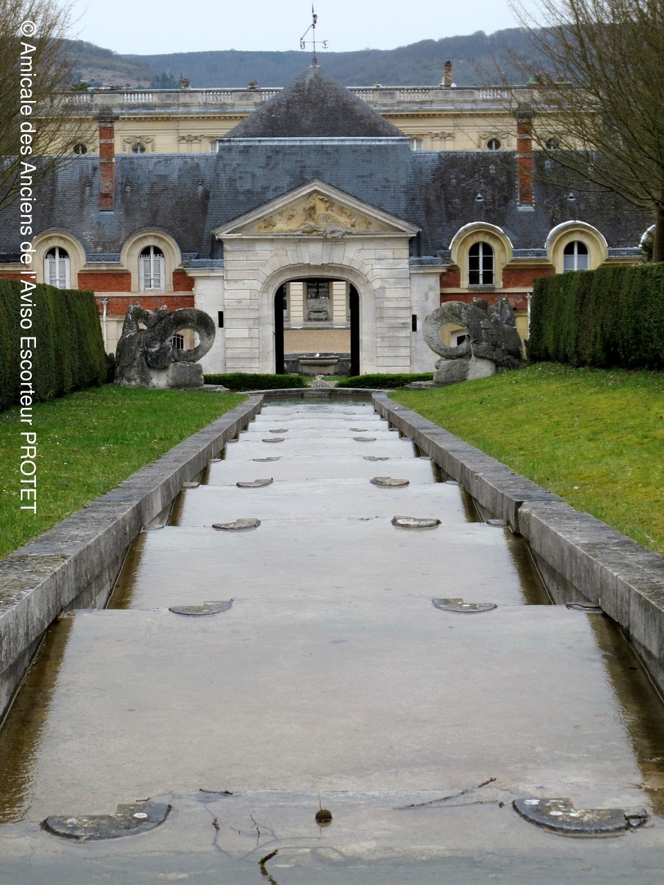 Du centre de la cour, face aux écuries construites en 1741 par l'architecte Contant d'Ivry pour le Duc de Belle-Isle, il ne faut pas manquer d'admirer la magnifique perspective de fontaines.