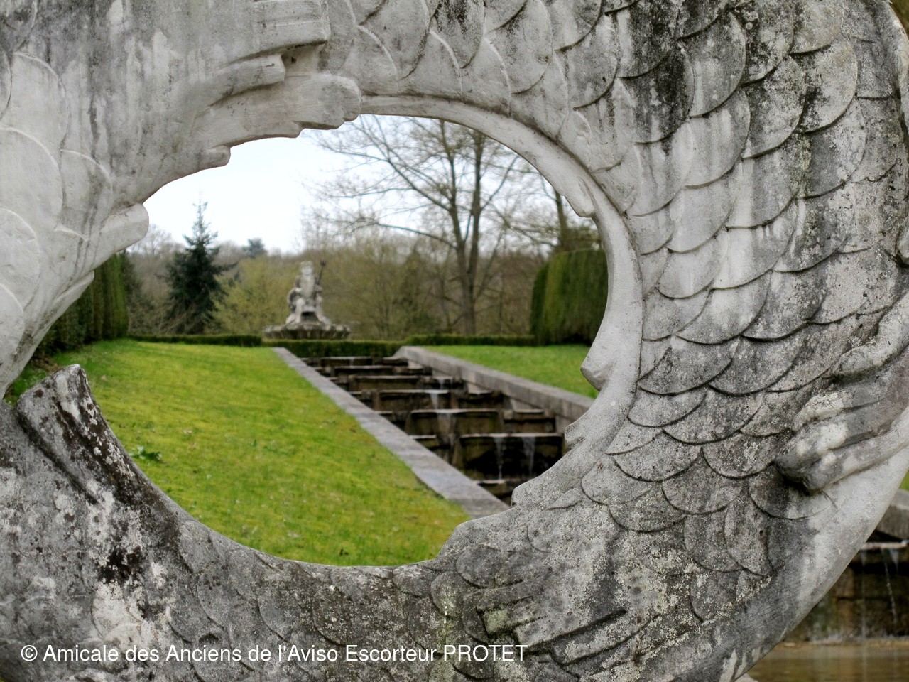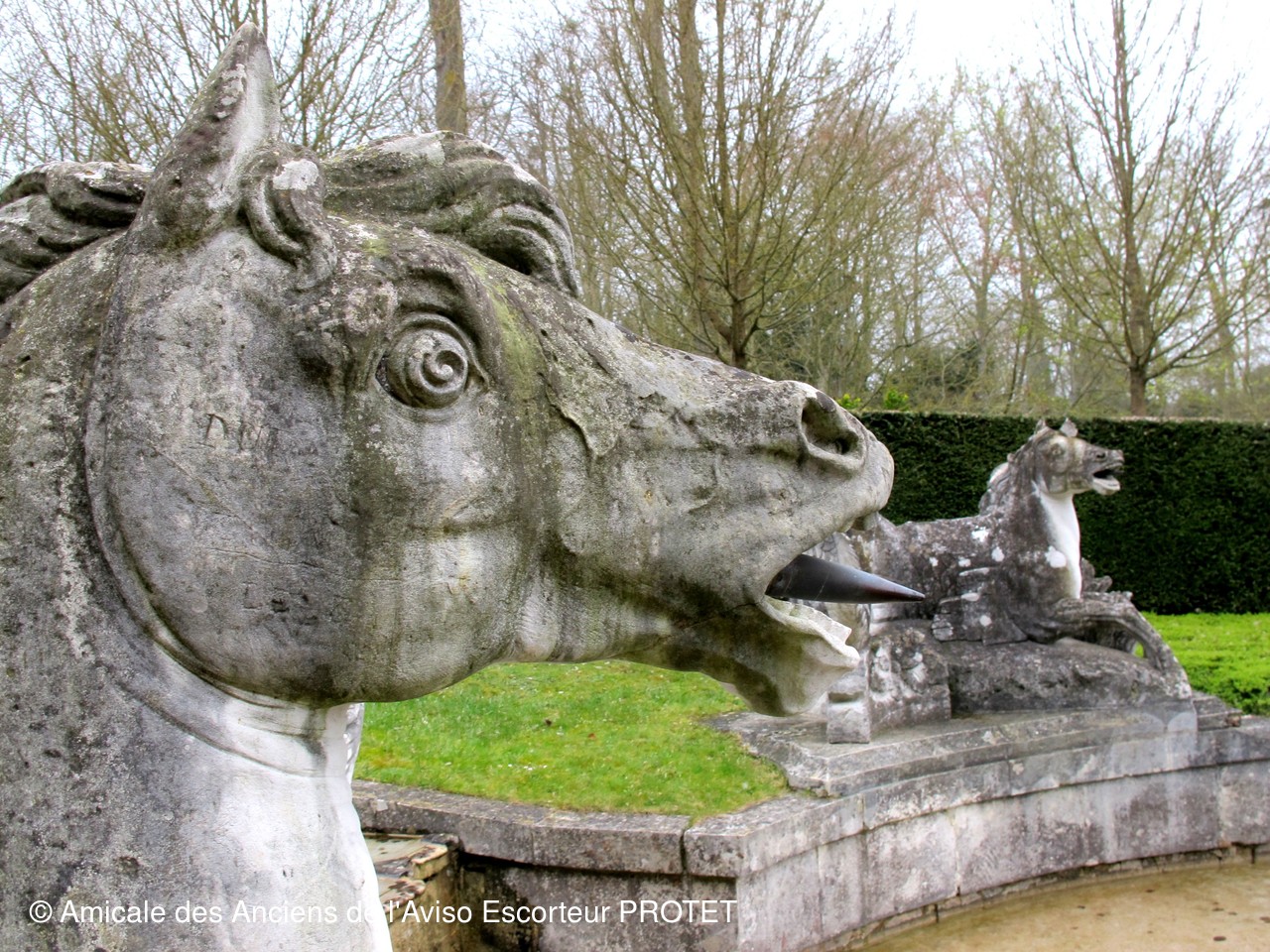 La Visite des fontaines permet de voir les détails des sculptures qui forment dans leur ensemble une magnifique perspective. Ainsi, les chevaux marins et celui que l'on surnomme "Gribouille" peuvent être approchés de près.