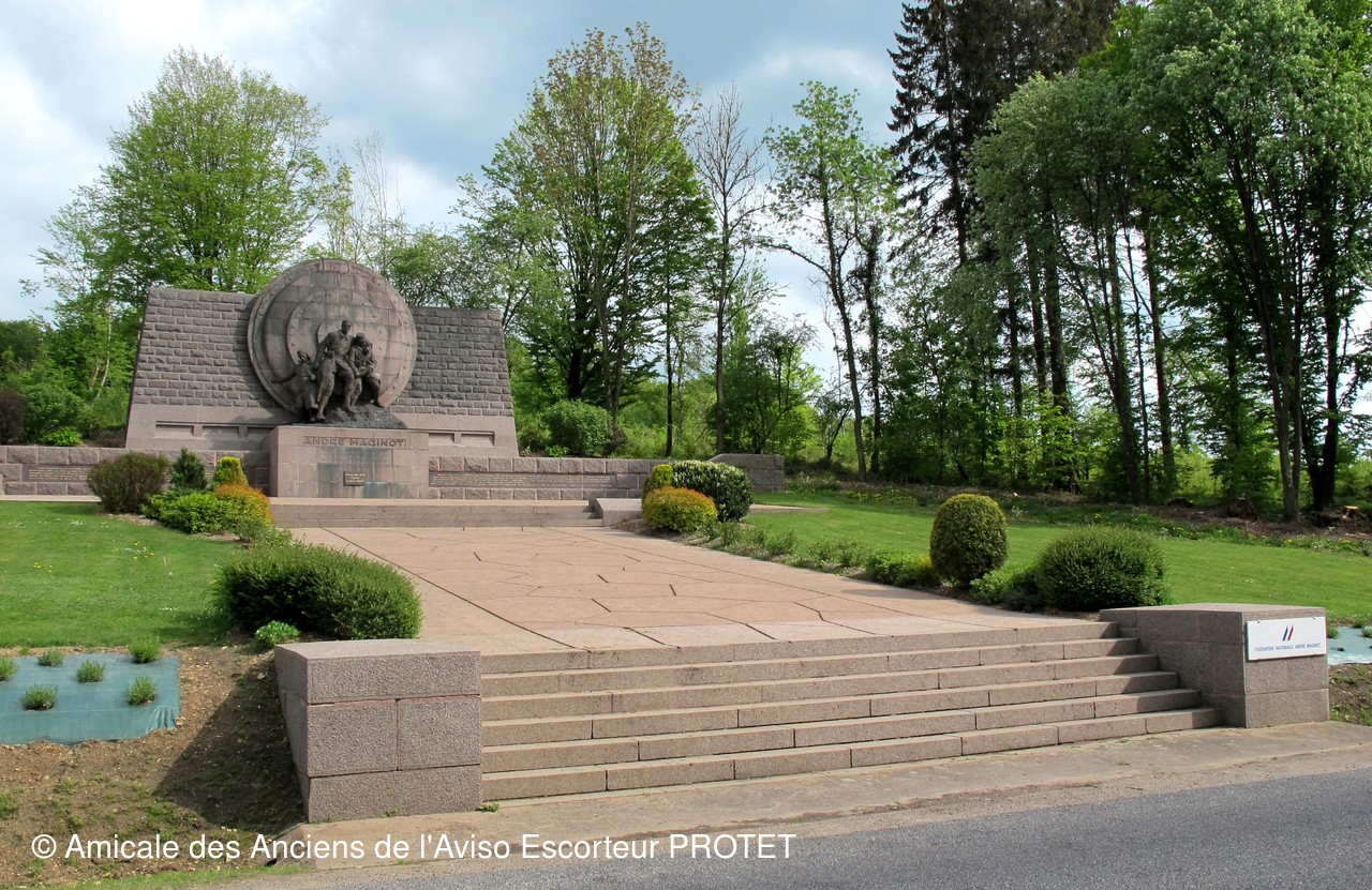 Dressé là où lui fut remis la médaille militaire, le monument évoque le caporal André MAGINOT blessé et soutenu par le soldat François-Joseph JOLAS qui lui sauva la vie pendant la bataille de Verdun. Il fut inauguré en 1935 par le Président Albert LEBRUN.