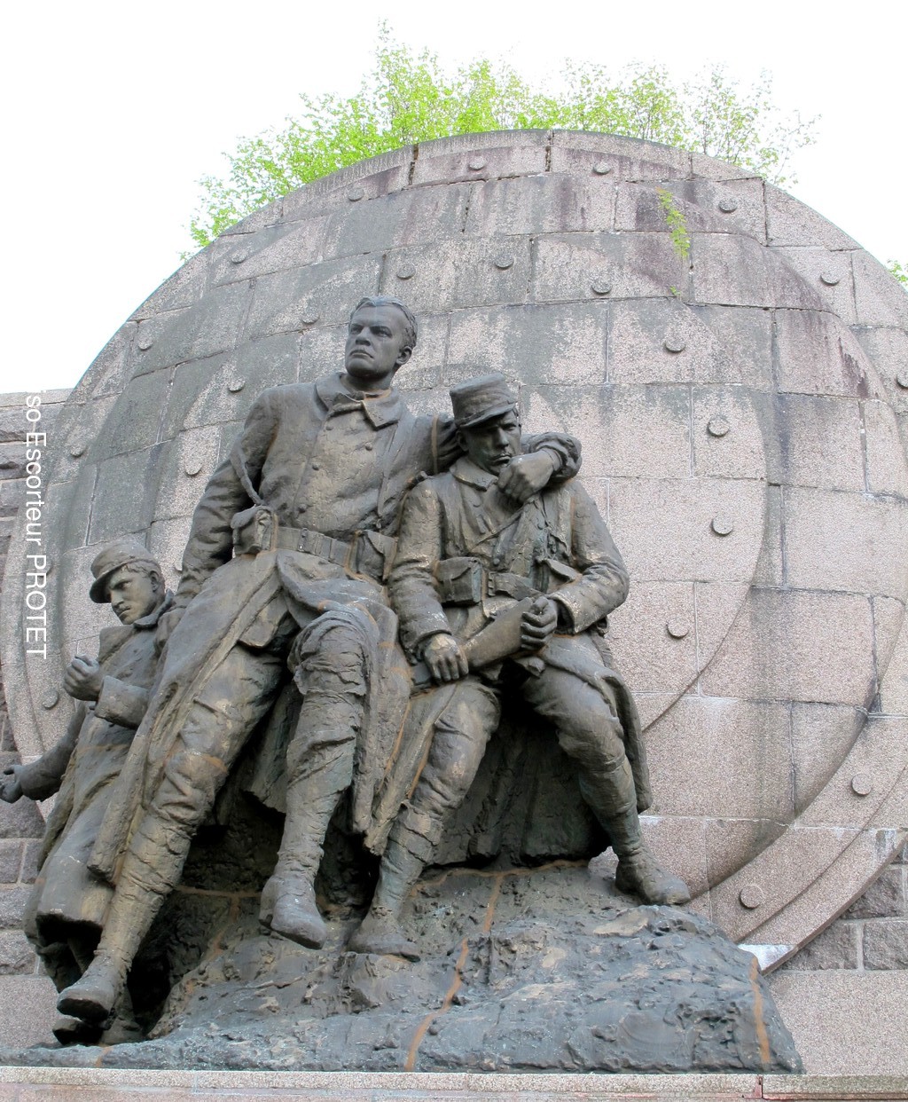Le groupe de soldats, un bronze de Gaston BOCQUET, est adossé à une muraille (symbole des forts de Verdun) devant laquelle se dresse un bouclier, symbole de la ligne fortifiée qui jalonne les frontières de l'est, dont le financement fut obtenu par le ministre de la guerre André MAGINOT (construite dans les années trente par son successeur Paul PAINLEVE) et qui porte son nom : la Ligne Maginot.