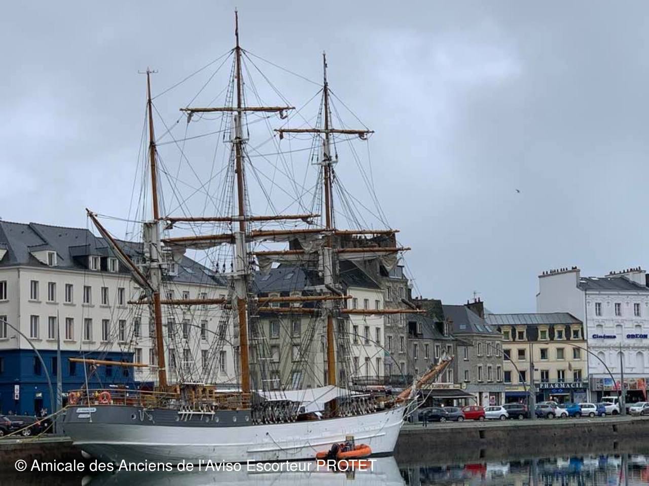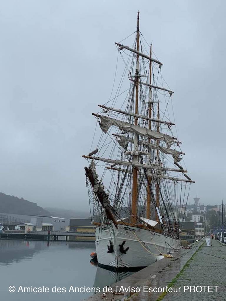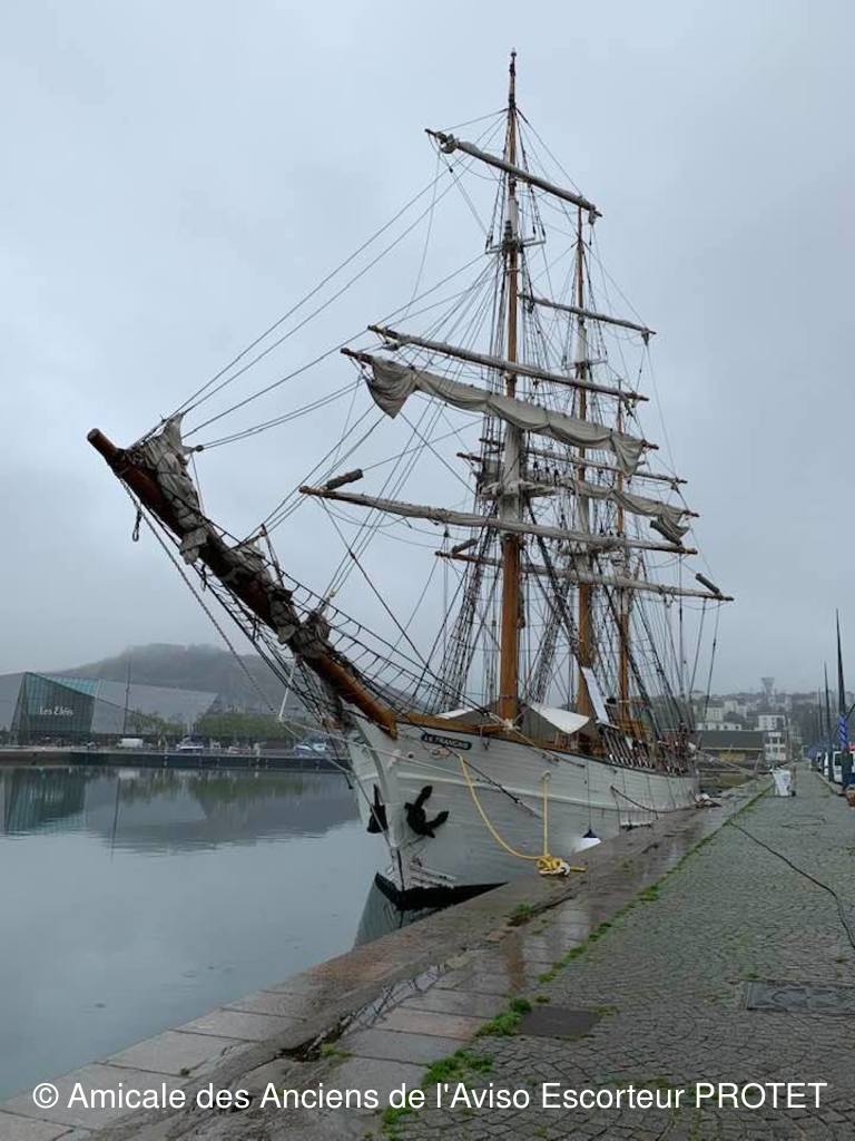 Grand voilier battant pavillon français, Le Français et son équipage sont amarré au cœur de Cherbourg, quai Alexandre-III, dans la nuit de vendredi 11 à samedi 12 octobre.