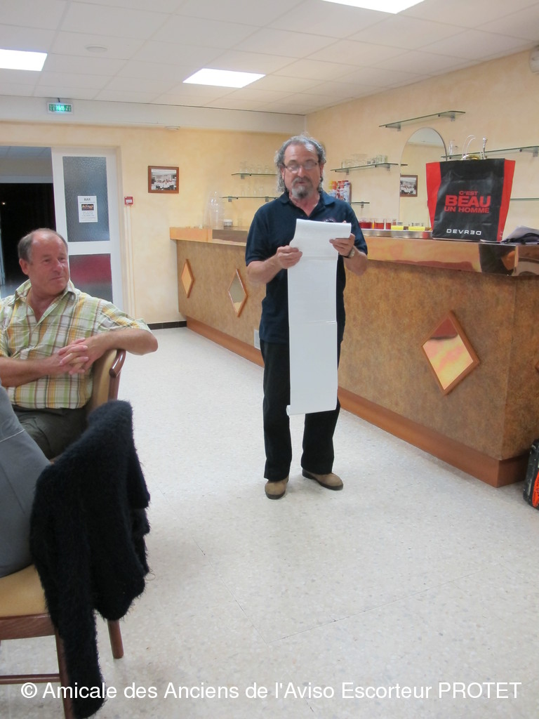 « « « Bienvenue mesdames et à vous chers anciens qui ont formés les équipages, de notre Lévrier des Mers pour notre seconde rencontre de l’amicale des anciens de l’aviso escorteur PROTET. Merci à vous d’y participer.