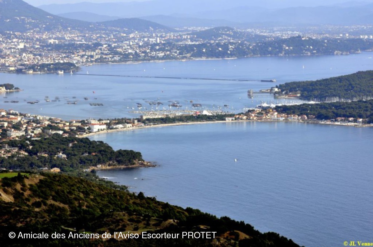 Au point culminant du massif, on peut admirer une vue panoramique allant du massif des Maures jusqu'aux calanques de Marseille et l'île de Riou sans oublier la rade et les îles d'Hyères, la presqu'île de Giens mais également la rade de Toulon qui s'étale aux pieds du Coudon, de la chaîne du mont Faron, le mont Caume, le Bare des Quatre Ouro et le Gros-Cerveau.
