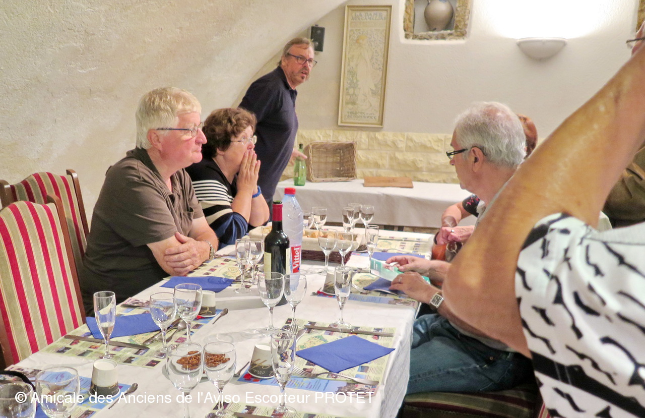 Après la visite du musée de la brasserie nous voici (à pied) au restaurant de la Licorne pour un repas dans une cave voutée ou nous sommes accueillis par Lydie et Emile Jacquot.