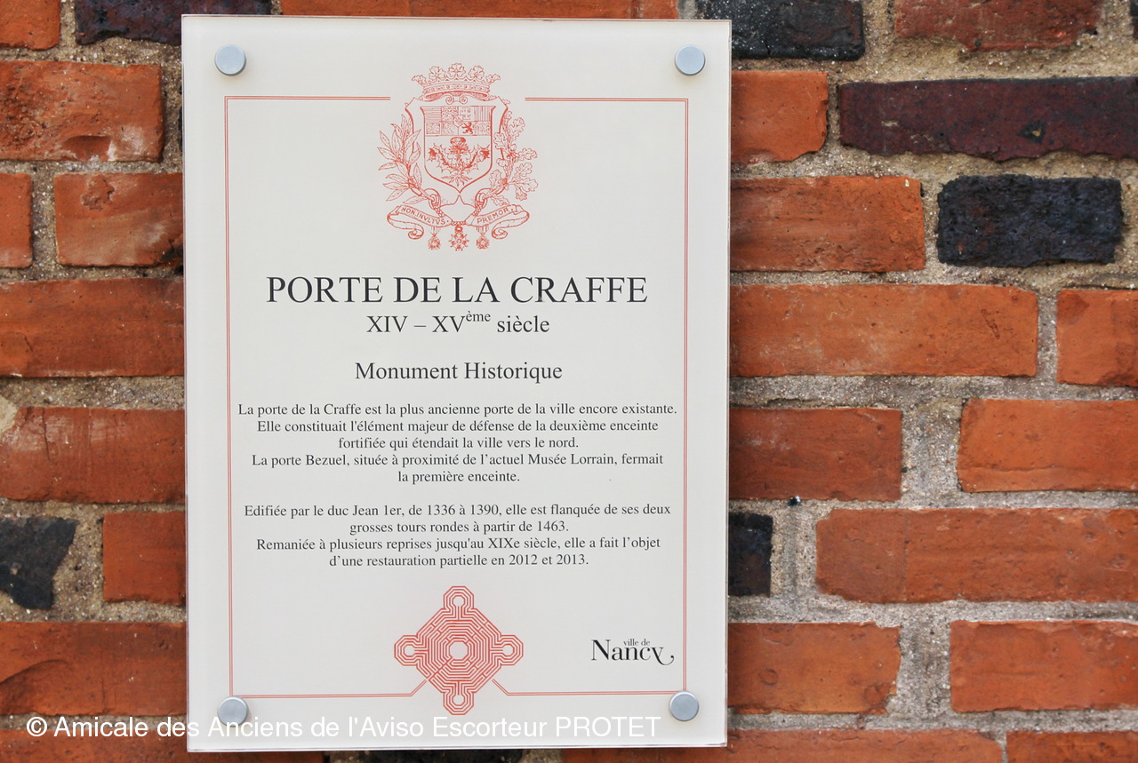 La monumentale porte de la Craffe témoigne de la qualité de l'enceinte protectrice de la cité à la fin du XIVème siècle. En effet, ses deux tours jumelles, édifiées en 1463, possèdent des murs de trois mètres d'épaisseur qui résistèrent vaillament aux sièges de la ville en 1476 et 1477 par Charles Le Téméraire. Les fenêtres étaient disposées de manière à faciliter des tirs dans toutes les directions, des corbeaux de pierres soutenaient autrefois des volets protégeant les défenseurs postés à ces ouvertures.