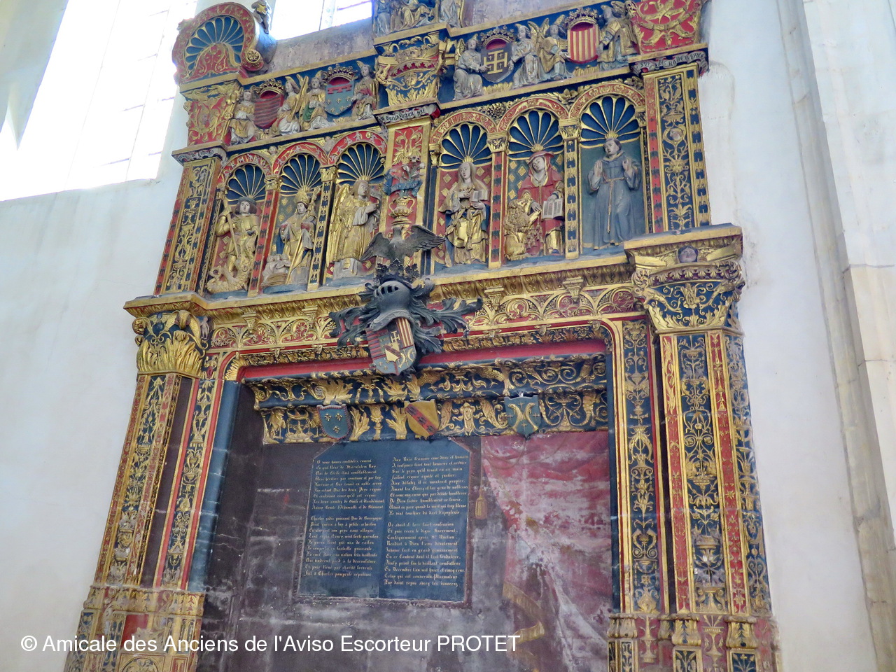 Un retable polychrome (de 1522) décore la pierre d'autel sur laquelle est dressée une représentation de la Sainte Trinité ; ce retable abrite dans des niches à coquille des évangélistes et des saints ainsi que la scène de l'Annonciation chère à René II.