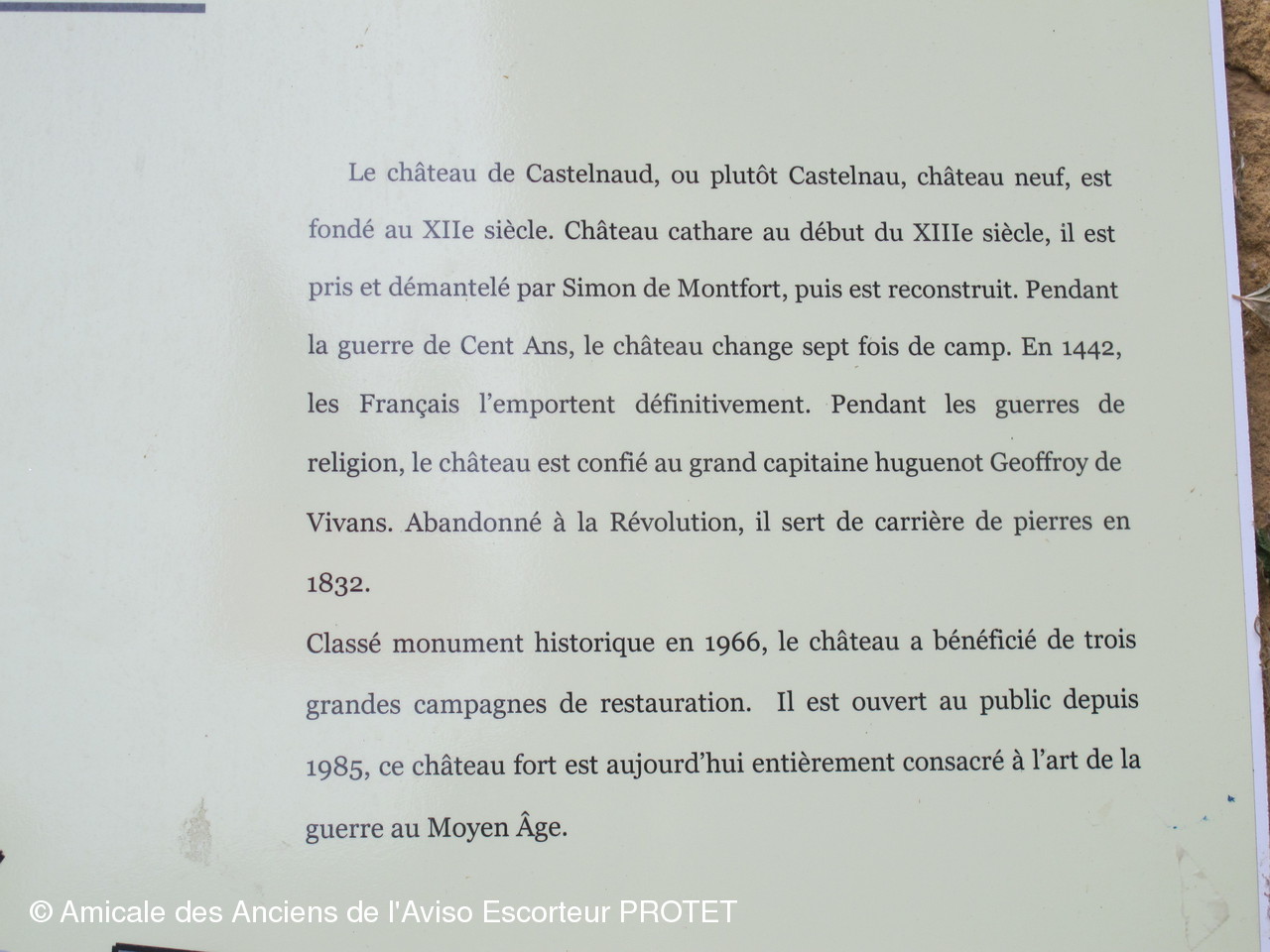 Le Dimanche 13 septembre après midi était programmé la visite libre du Château de CASTELNAUD.