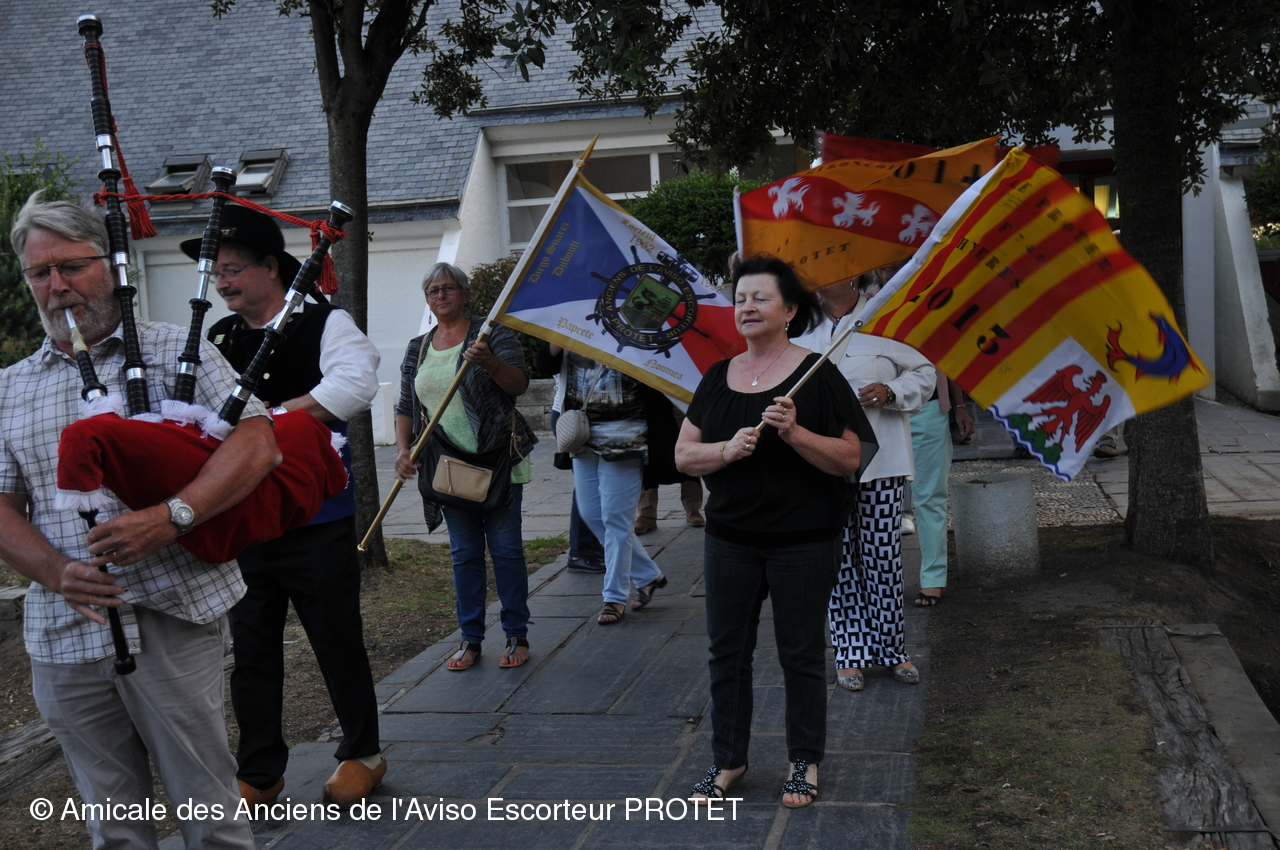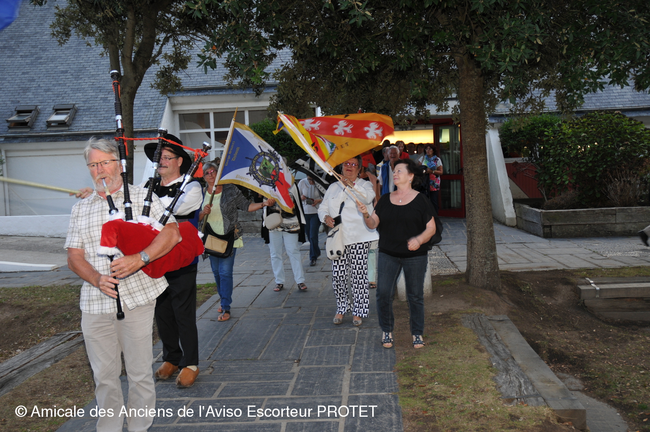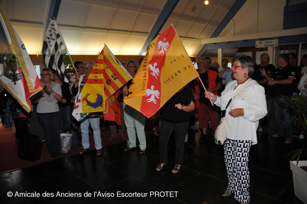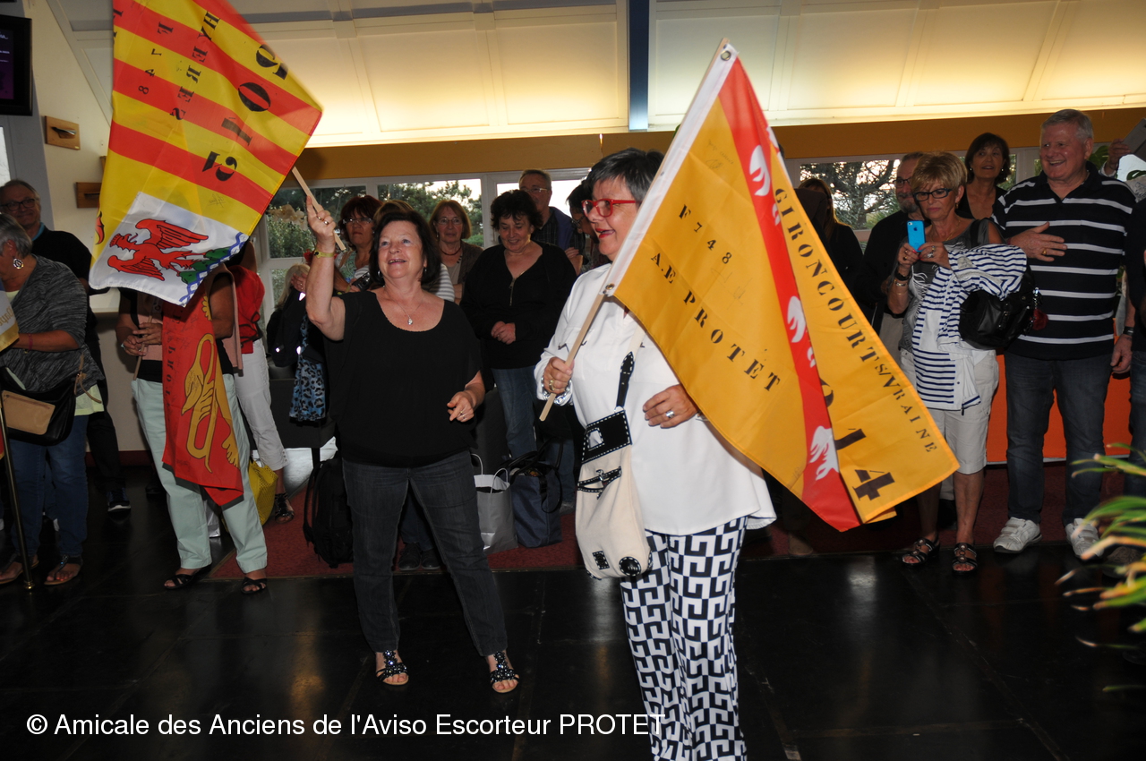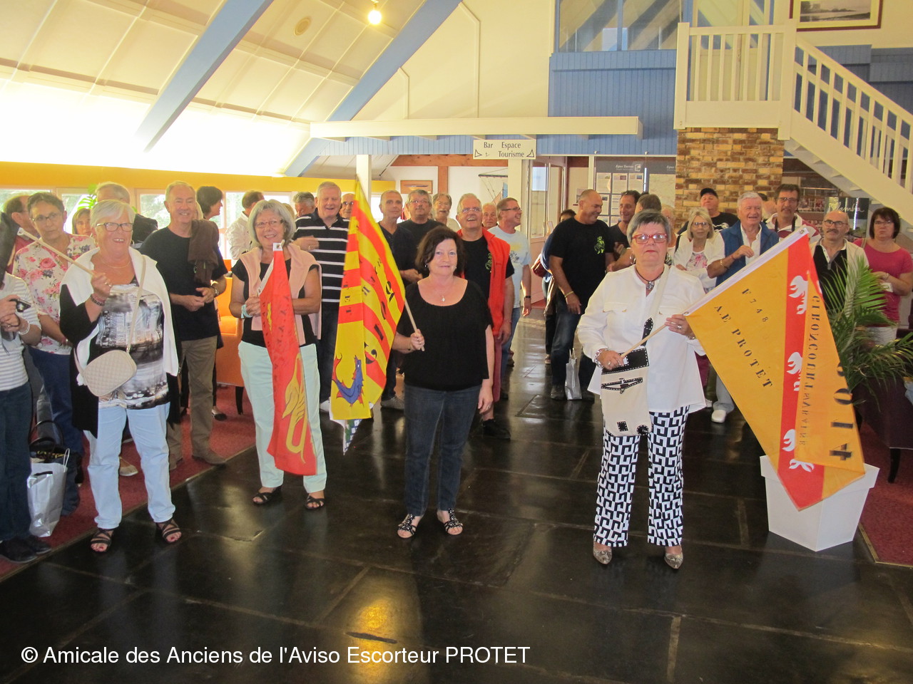 Merci à l'ami Pierrick pour son dévouement, sa disponibilité et pour le programme qu'il nous a préparé. Voila plus d'un an qu'il est dans les préparatifs de la réussite de ce rendez vous. Accueil dans le hall d'entrée du Club au son de la cornemuse, entrée des drapeaux, exposition d'objets de représentation du PROTET avec une complète marcophilie navale le représentant et des documents d'époque, voila une belle entrée en matière.