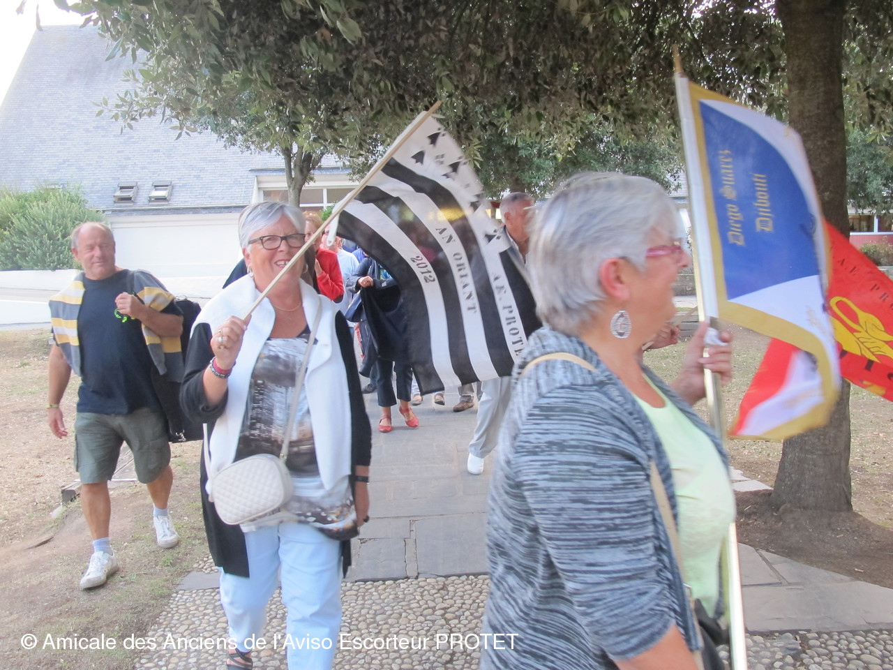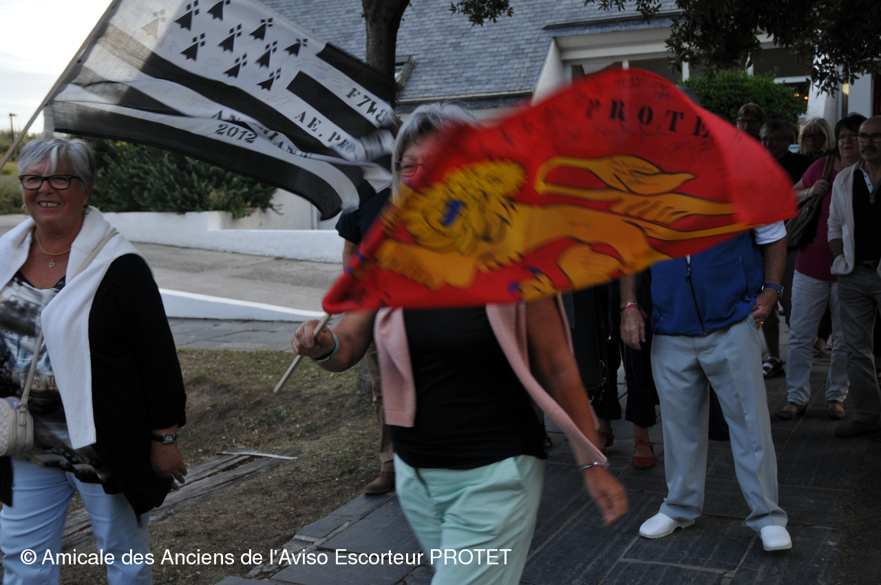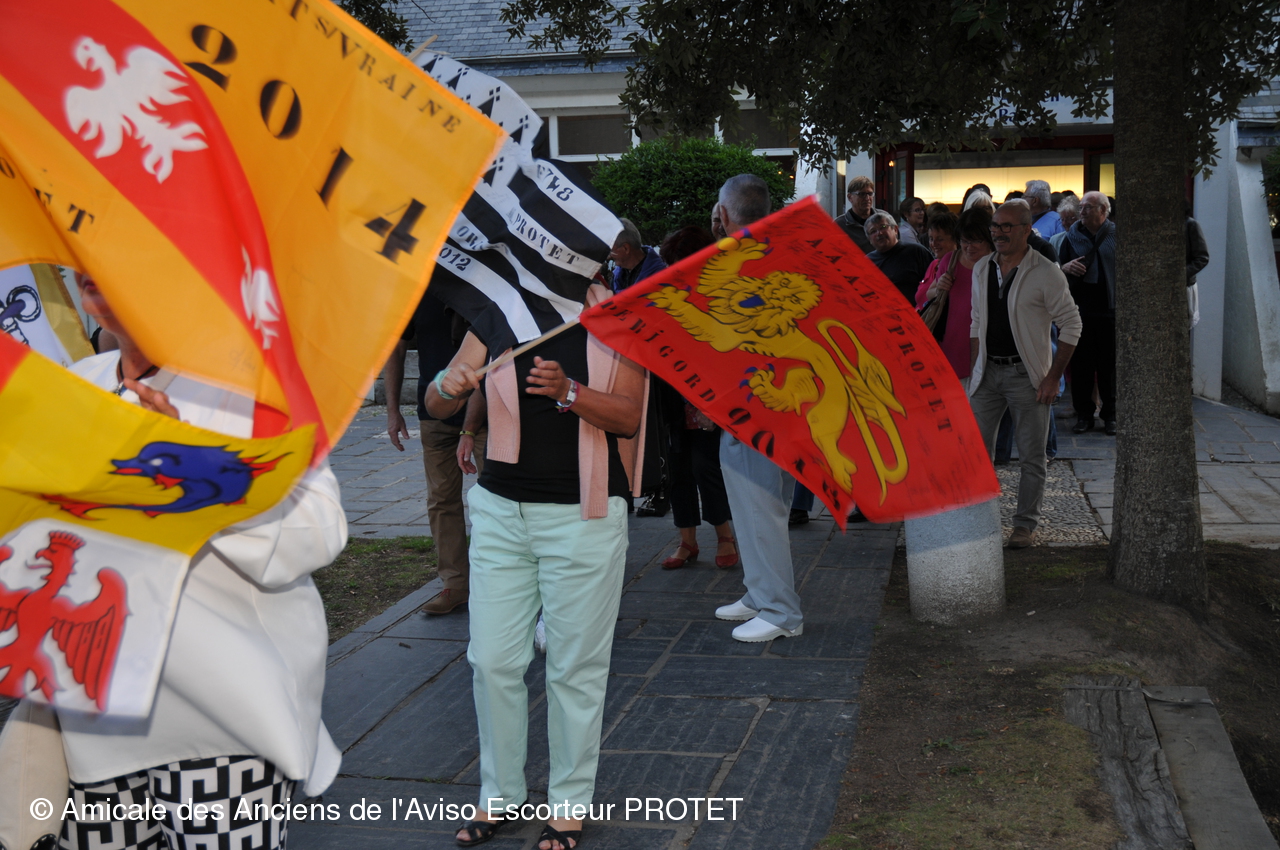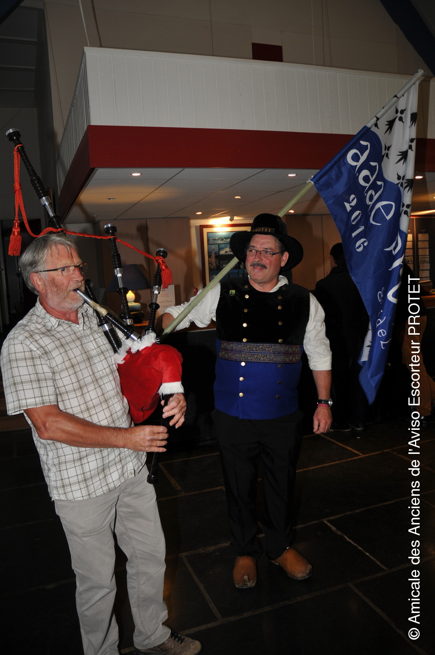 Merci à l'ami Pierrick pour son dévouement, sa disponibilité et pour le programme qu'il nous a préparé. Voila plus d'un an qu'il est dans les préparatifs de la réussite de ce rendez vous. Accueil dans le hall d'entrée du Club au son de la cornemuse, entrée des drapeaux, exposition d'objets de représentation du PROTET avec une complète marcophilie navale le représentant et des documents d'époque, voila une belle entrée en matière.