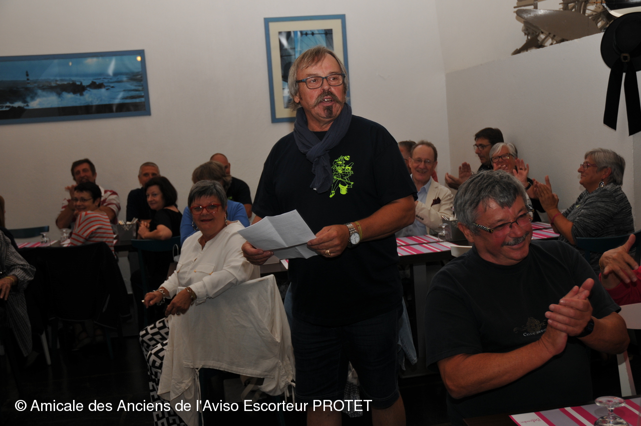Je suis heureux de l'arrivée dans le groupe de nouveaux visages et notamment de l'un des premiers membres de l'équipage de l'AE PROTET, en la personne du QM1 canonnier Michel LE DEROUT, 71 ans, embarqué le 1 octobre 1963.