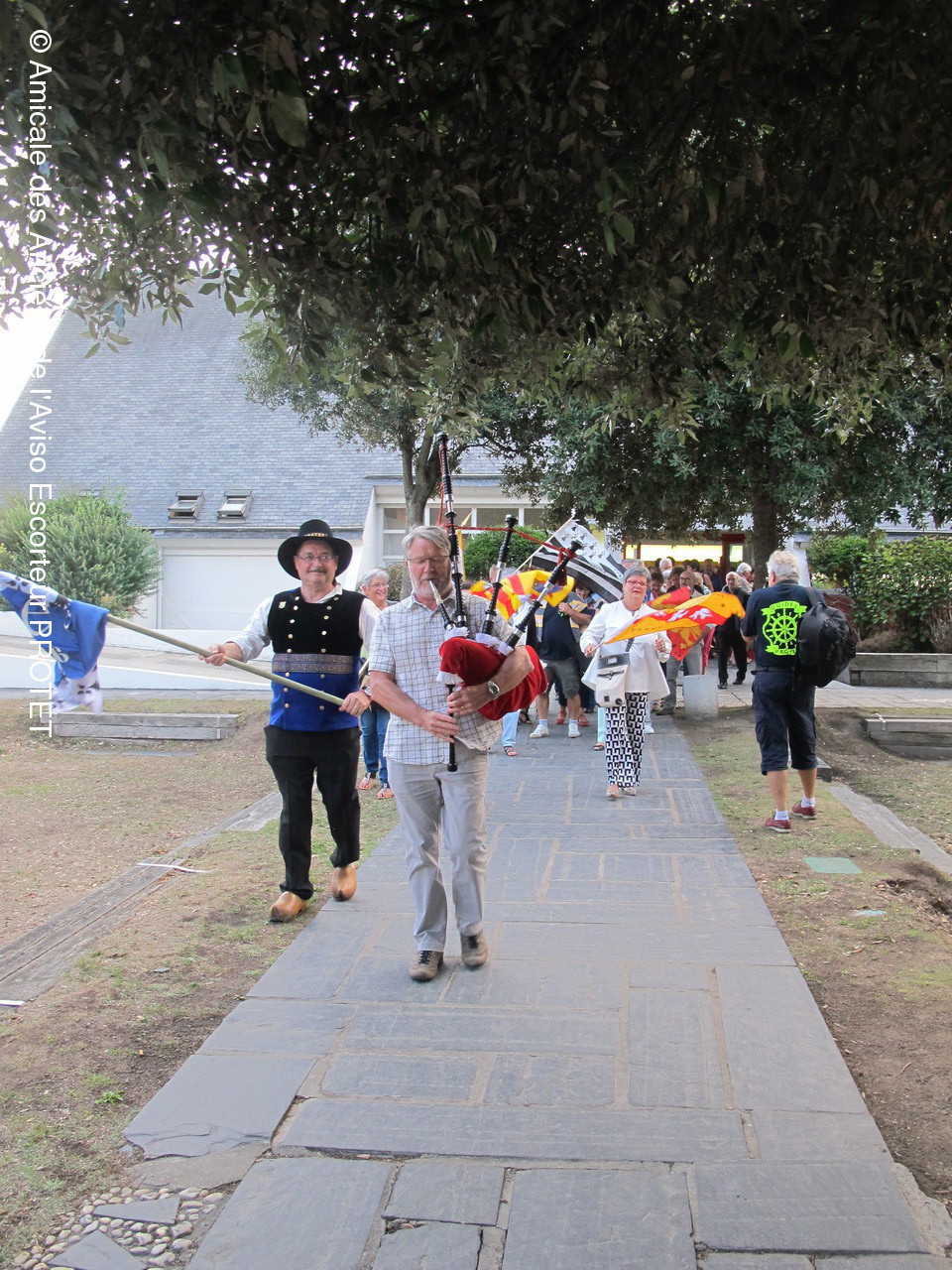 Pierrick avait un joueur de "biniou" et les épouses des précédentes rencontres portaient hautes les couleurs des régions visités.