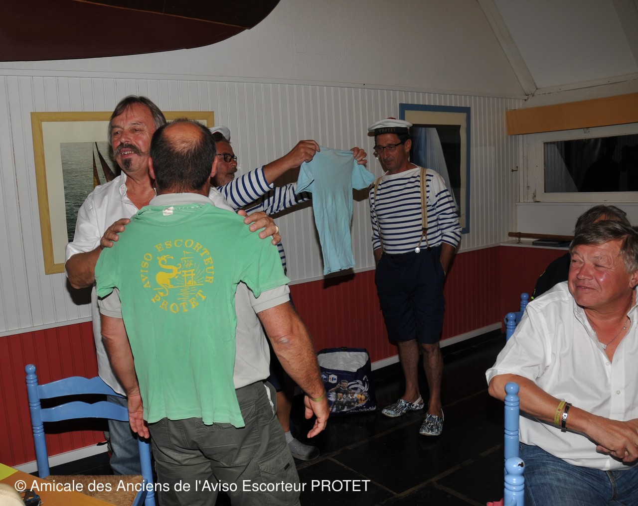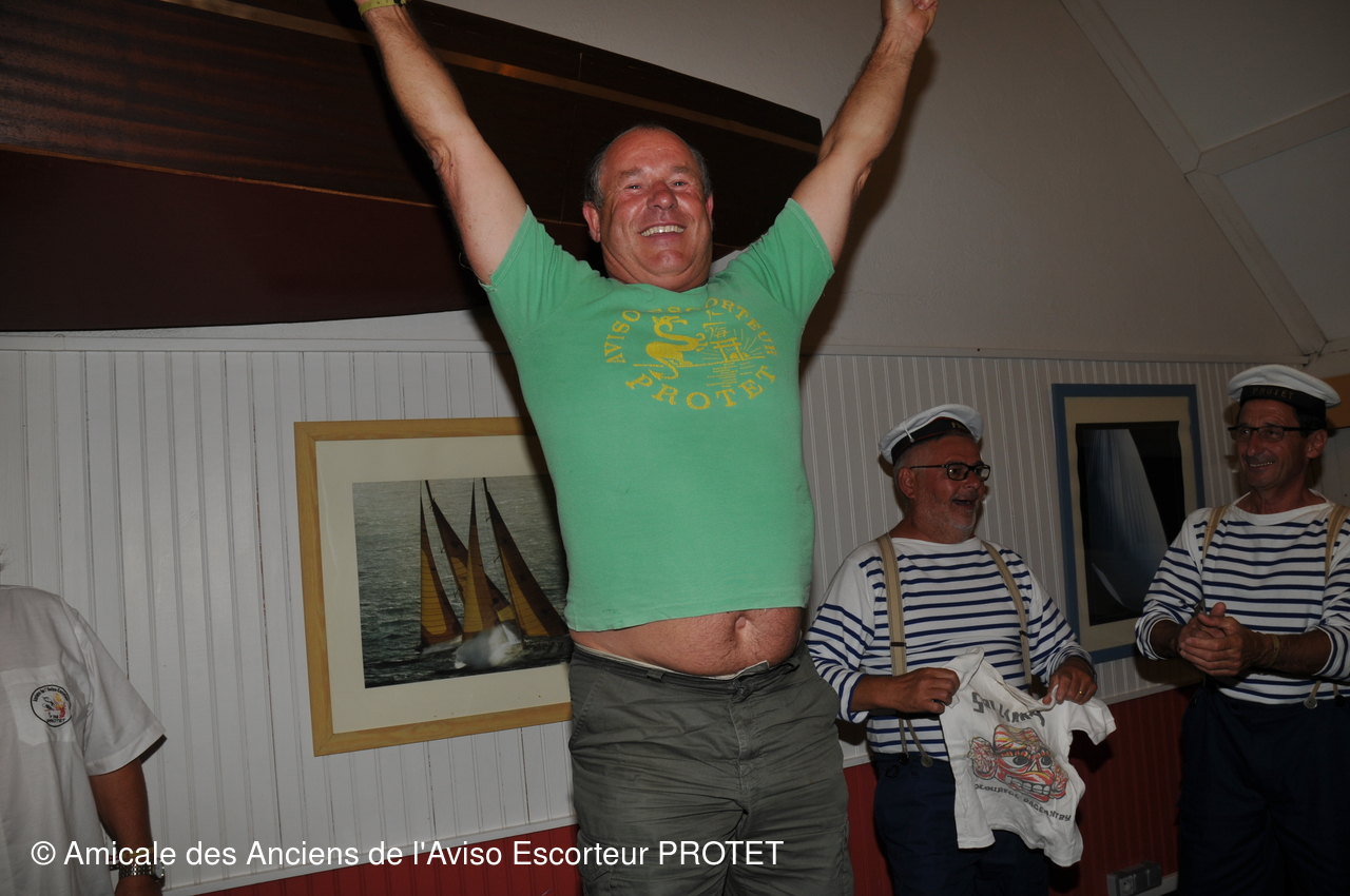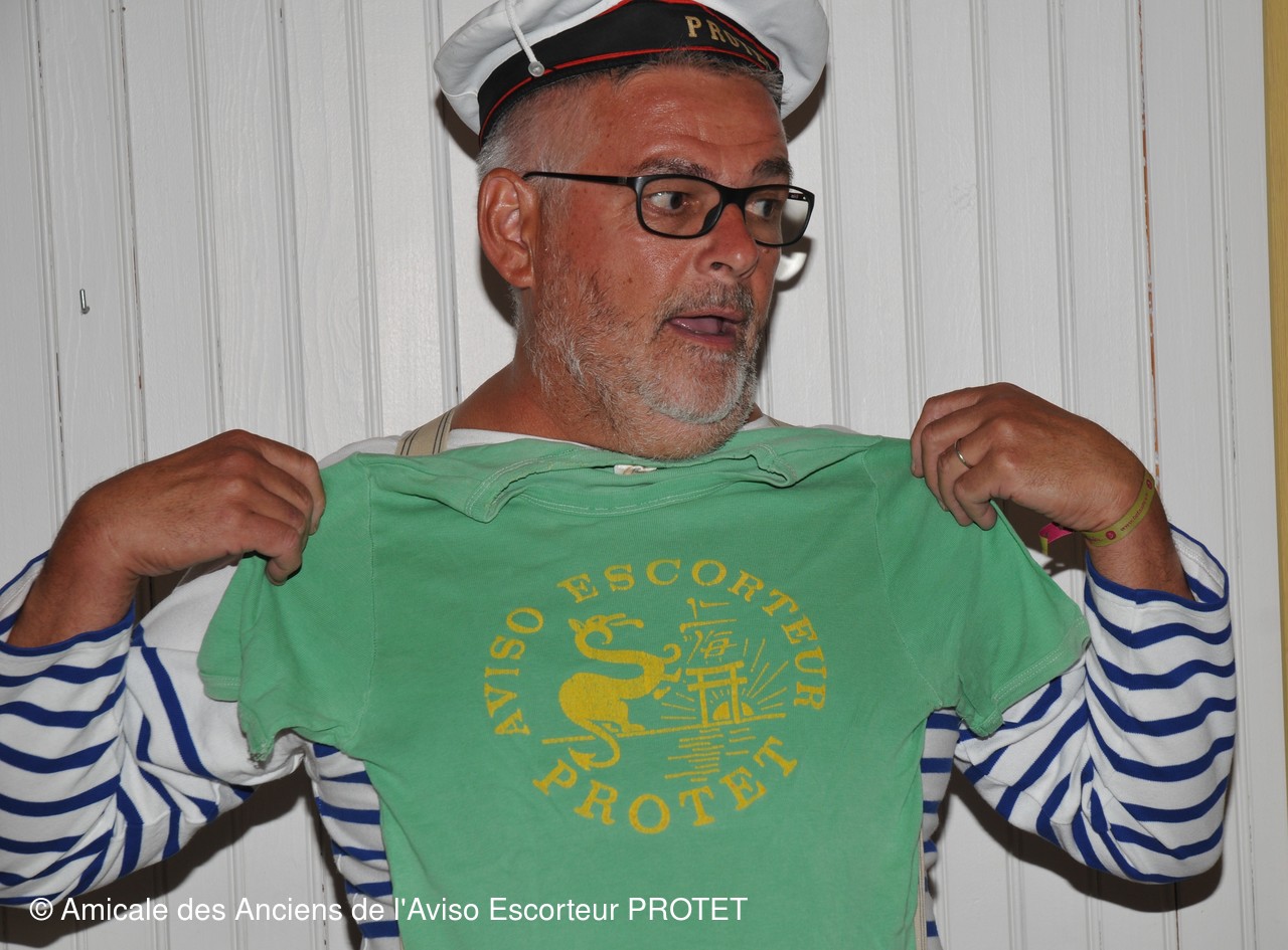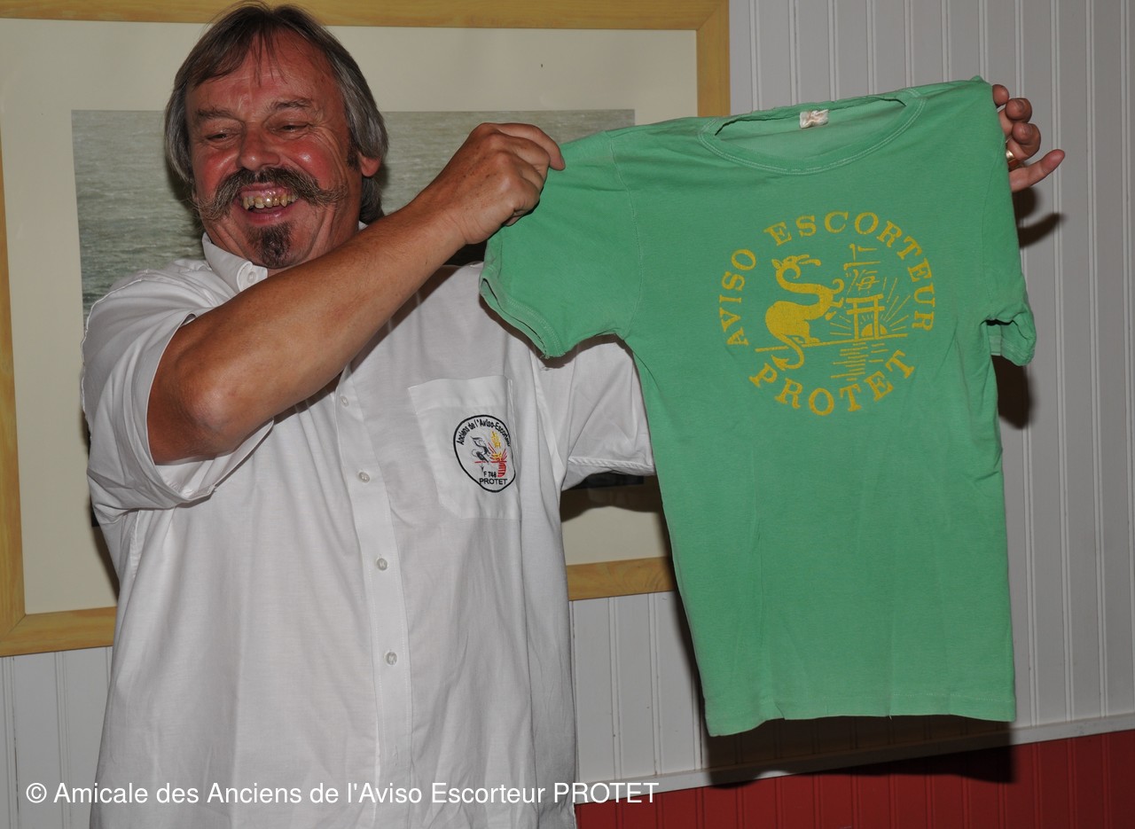 Au cours de ce repas, un retour arrière a été fait pas nos deux compères Michel et Raymond. Michel à fait don pour la collection des objets du patrimoine de l'AAAE PROTET, du tee-shirt de cette époque. D'autres viendrons enrichir la collection, souvenirs d'escales mythiques !!!!