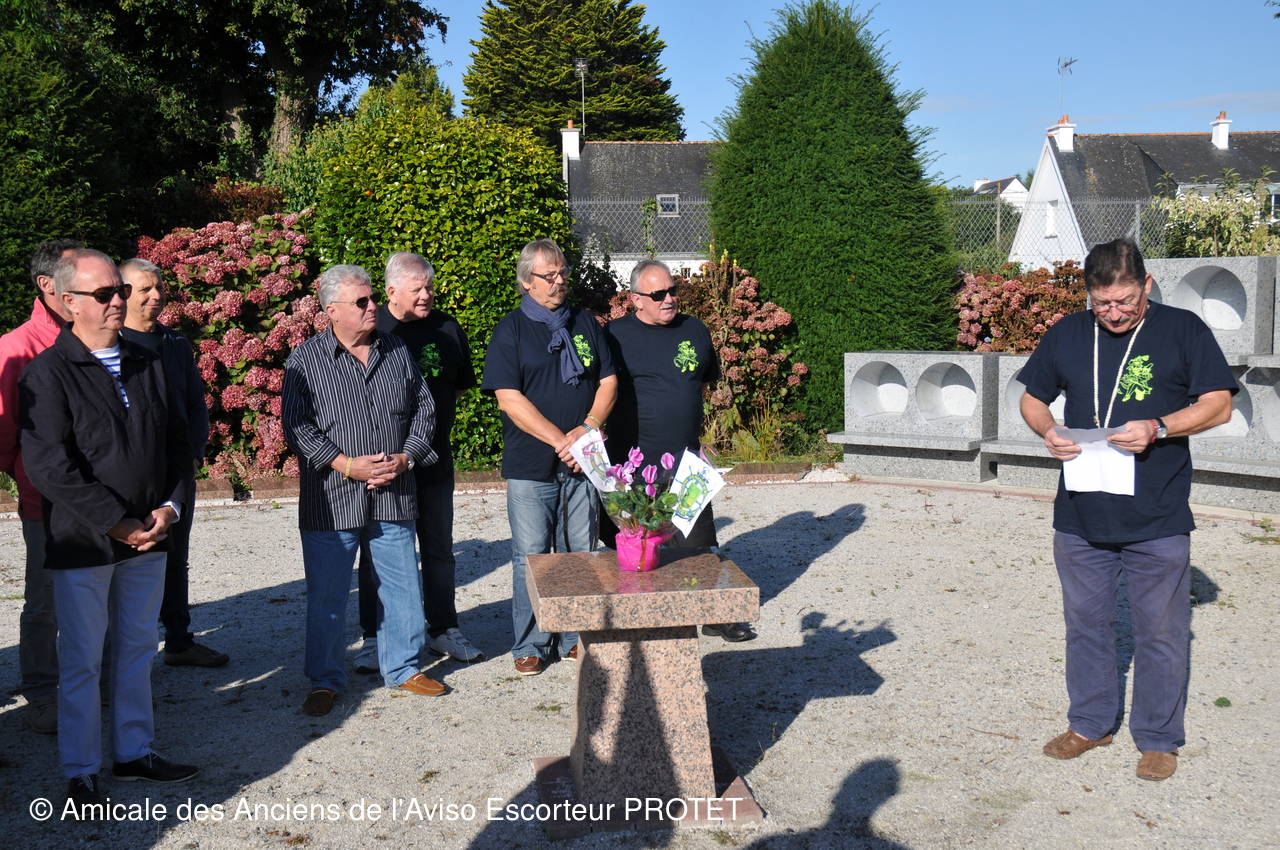 A l'occasion de cette rencontre à LORIENT, il a été décidé de lui rendre un hommage et d'apposer avec l'accord de Marie Odile une petite plaque souvenir de ses compagnons de l'AE PROTET.