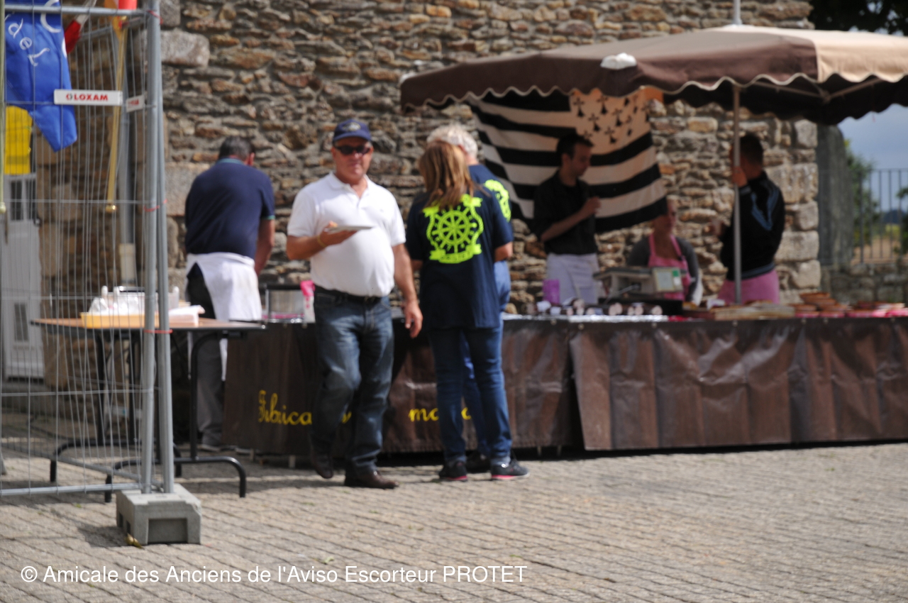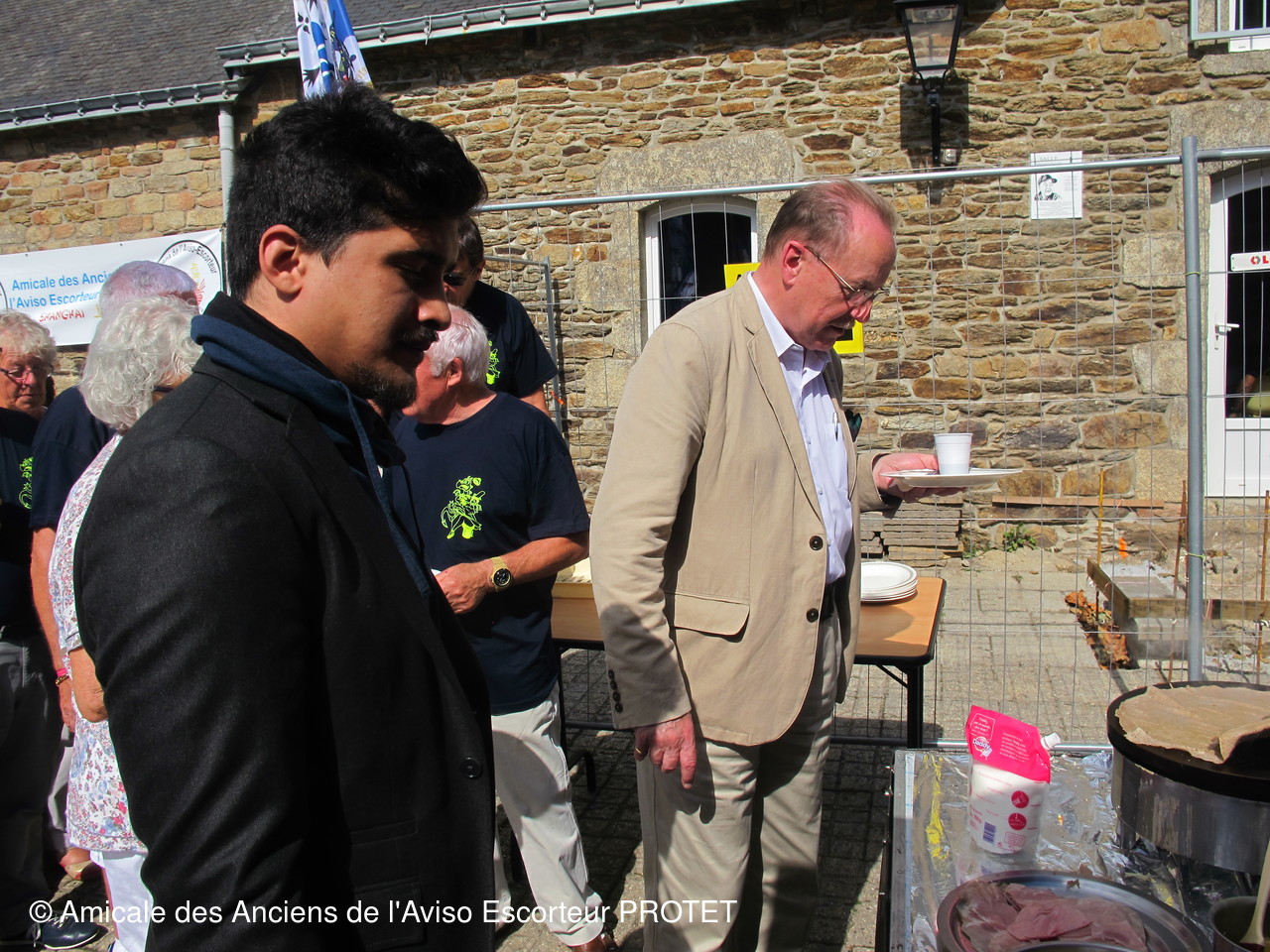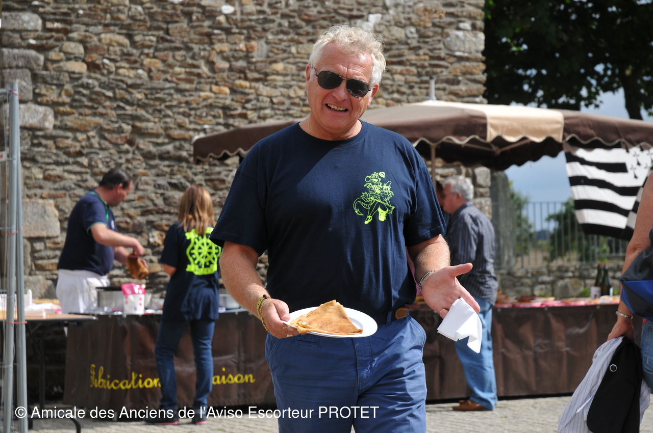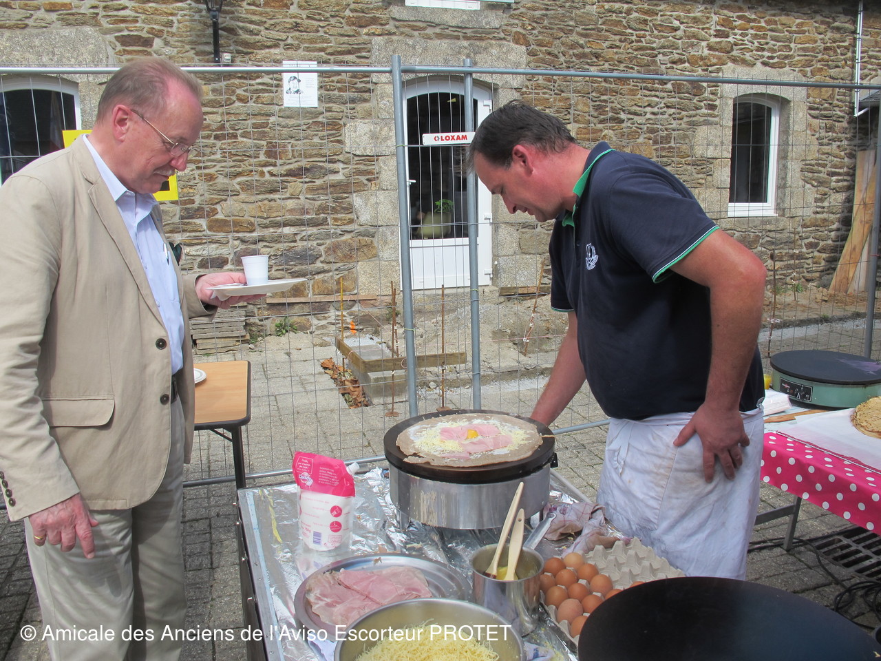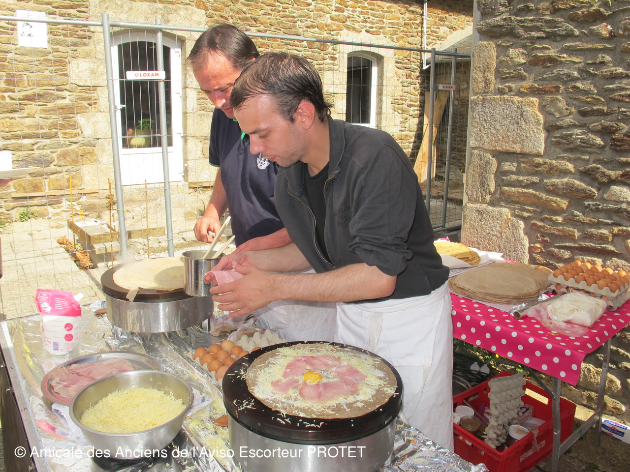 Les cuistots non pas chômés, a voir la queue pour déguster le plat traditionnel breton la crêpe salée ou la crêpe sucrée qui cuit sur le" billig". Ils admirent aussi le coup de main du chef pour étaler la pâte en disque à l'aide d'une "rozell"