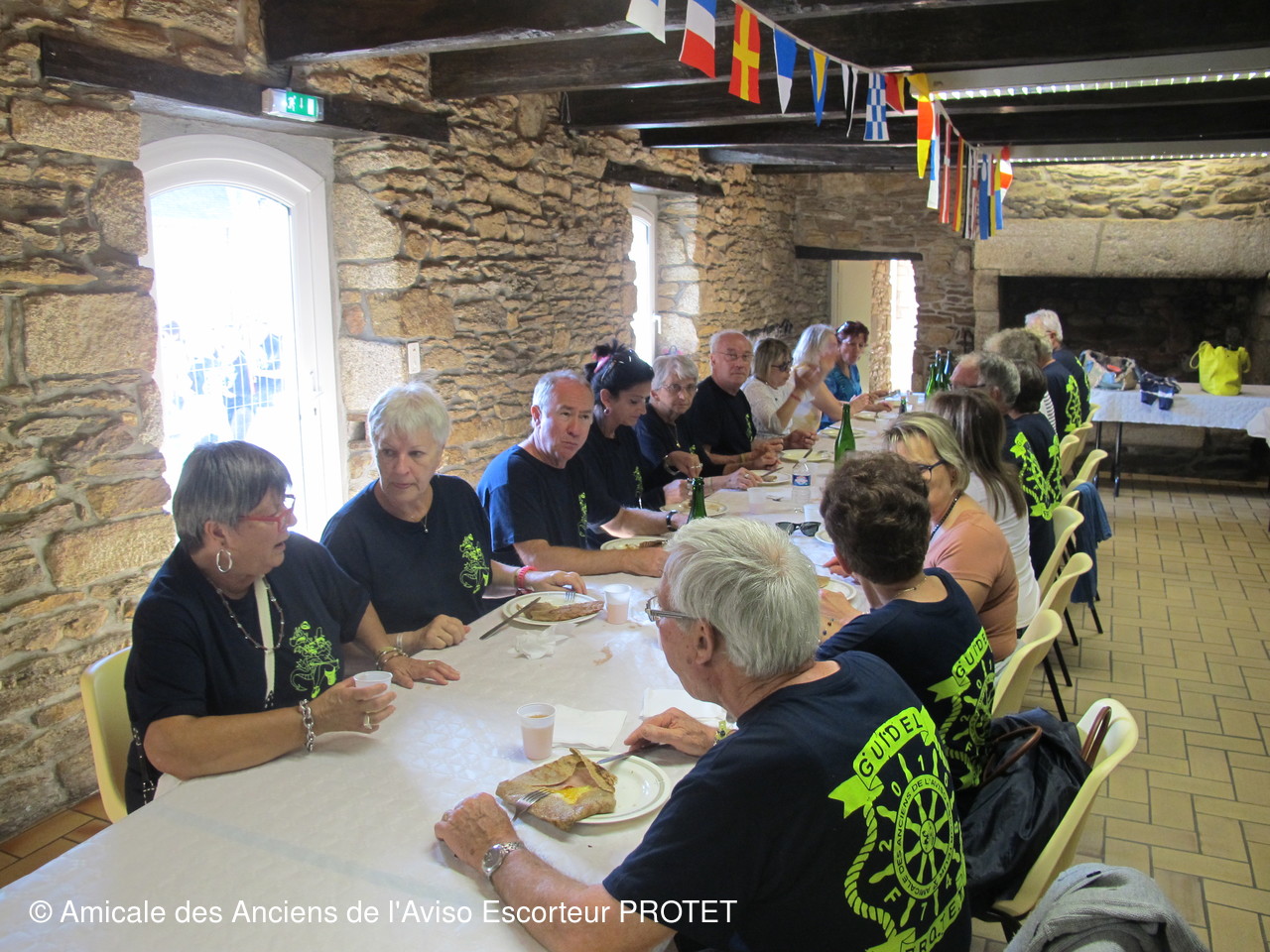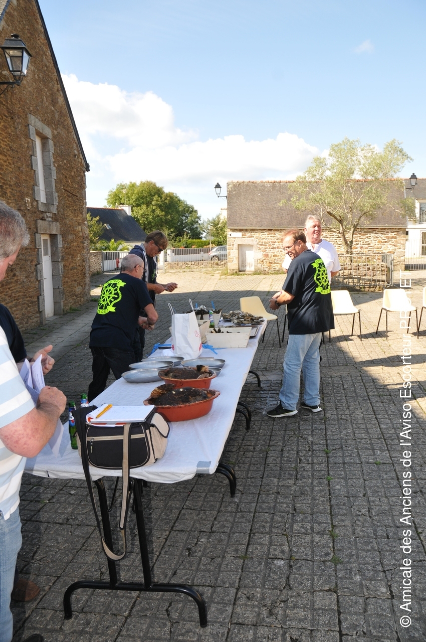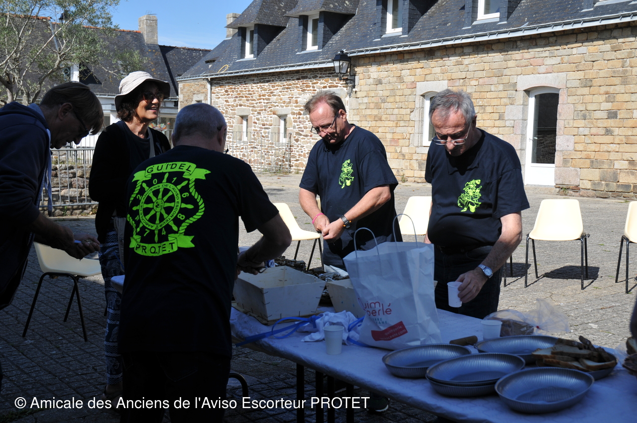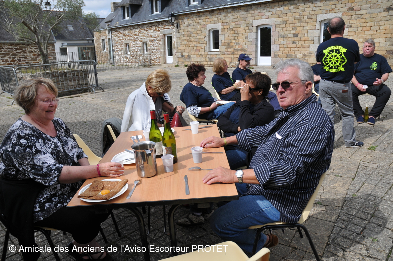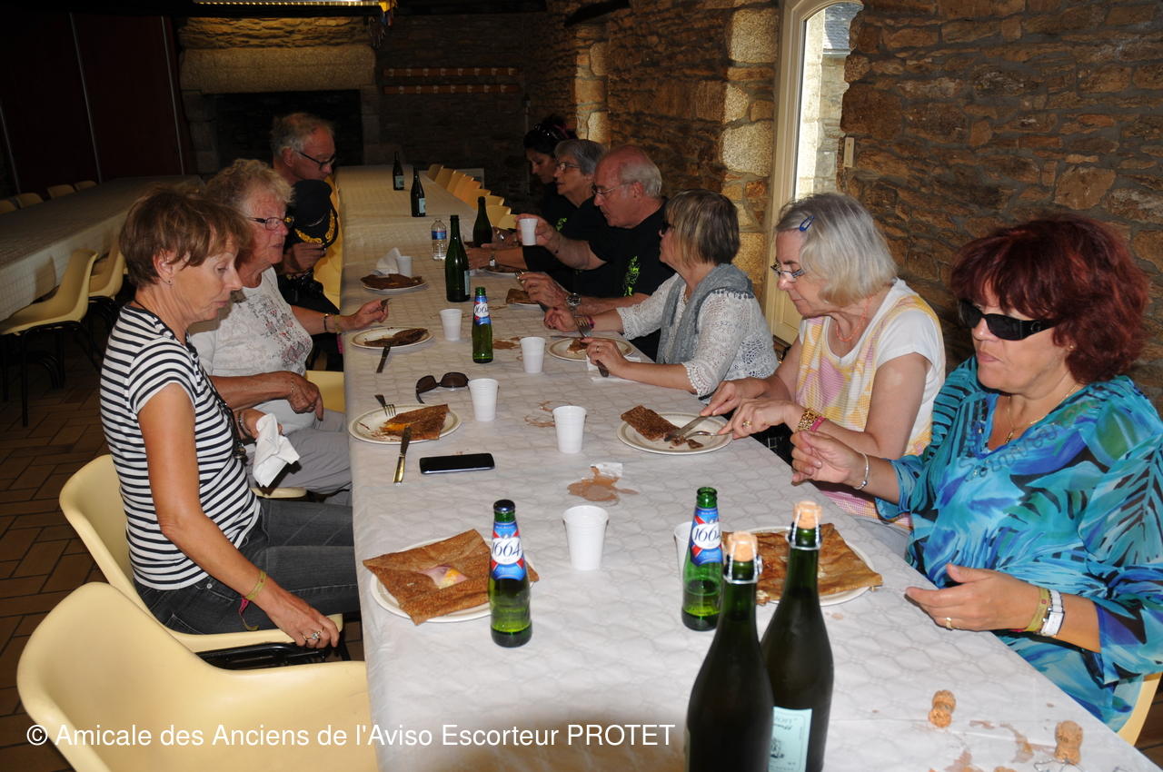 Les cuistots non pas chômés, a voir la queue pour déguster le plat traditionnel breton la crêpe salée ou la crêpe sucrée qui cuit sur le" billig". Ils admirent aussi le coup de main du chef pour étaler la pâte en disque à l'aide d'une "rozell"