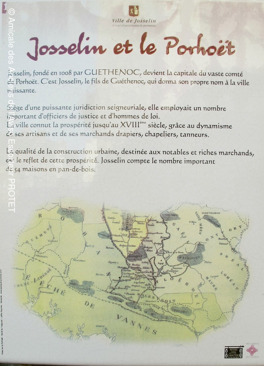 Guéthenoc de Porhoët fait édifier le premier château en 1008, ses descendants, les Ducs de Rohan contribueront au développement de la ville de Josselin, qui porte le nom de son fils. Fleuron architectural de la ville, le château se transforme au fil des siècles : forteresse médiévale, nantie d’un donjon rendu célèbre lors du combat des Trente, agrémentée au XIVème d’un logis à la splendide façade Renaissance.